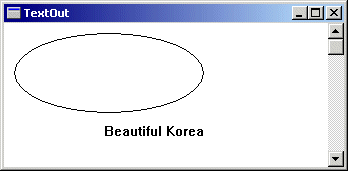 TextOut(hdc,100,100,"Beautiful Korea",15);