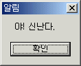 ¸Þ½ÃÁö ¹Ú½º´Â ÀÀ¿ë ÇÁ·Î±×·¥ÀÌ »ç¿ëÀÚ¿Í ´ëÈÇÒ ¼ö ÀÖ´Â °¡Àå °£´ÜÇÑ ¹æ¹ýÀÌ´Ù. ªÀº ¸Þ½ÃÁö¿Í ÇÔ²² MB_OK Ç÷¡±×·Î °£´ÜÇÏ°Ô Àü´Þ »çÇ׸¸ Àü´ÞÇÏ´Â °ÍÀÌ º¸ÆíÀûÀÌ´Ù. MessageBox(hWnd,"¾ß! ½Å³´Ù.","¾Ë¸²",MB_OK);