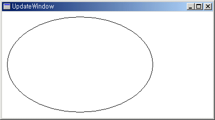 WM_PAINT¿¡¼´Â bEllipseº¯¼ö°ª¿¡ µû¶ó Ÿ¿øÀ» ±×¸®°Å³ª Áö¿î´Ù. ¿ÞÂÊ ¹öưÀ» ´©¸£¸é bEllipse¸¦ TRUE·Î ¹Ù²Û ÈÄ ÀÛ¾÷¿µ¿ªÀ» ¹«È¿ÈÇÏ°í ¿À¸¥ÂÊ ¹öưÀ» ´©¸£¸é bEllipse¸¦ FALSE·Î ¹Ù²Û ÈÄ ÀÛ¾÷¿µ¿ªÀ» ¹«È¿ÈÇϹǷΠÁÂ¿ì ¸¶¿ì½º ¹öưÀ» ´·¯ Ÿ¿øÀ» ±×¸®°Å³ª Áö¿ï ¼ö ÀÖ´Ù. ±×·±µ¥ ¸¸¾à bEllipse°ªÀ» ¹Ù²Û ÈÄ ½Ã°£ÀÌ °É¸®´Â ¾î¶² ÀÛ¾÷À» ÇØ¾ß ÇÑ´Ù°í ÇØ º¸ÀÚ. ÀÌ °æ¿ì ¹«È¿¿µ¿ªÀÌ ÀÖ´õ¶óµµ WM_PAINT ¸Þ½ÃÁö°¡ Áï½Ã 󸮵ÇÁö ¾Ê±â ¶§¹®¿¡ ÀÌ ÀÛ¾÷ÀÌ ³¡³¯ ¶§±îÁö´Â bEllipse º¯¼öÀÇ °ªÀÇ º¯È°¡ ¹Ý¿µµÇÁö ¾Ê´Â´Ù. ÀÌ·² ¶§ UpdateWindow ÇÔ¼ö¸¦ È£ÃâÇØ ÁÖ¸é Áï½Ã WM_PAINT¸¦ ó¸®ÇÏ¿© ÀÛ¾÷¿µ¿ªÀ» ´Ù½Ã ±×¸°´Ù. ¿¹Á¦¿¡¼´Â WM_LBUTTONDOWN¿¡¸¸ UpdateWindow ÇÔ¼ö¸¦ È£ÃâÇßÀ¸¹Ç·Î Ÿ¿øÀÌ ±×·ÁÁú ¶§´Â Áï½Ã ±×·ÁÁö³ª Áö¿öÁú ¶§´Â 0.5ÃÊÀÇ Áö¿¬ ½Ã°£ÀÌ ¹ß»ýÇÏ°Ô µÈ´Ù. ÀÌ ¿¹Á¦¿¡¼ Sleep(500)Àº ½Ã°£ÀÌ °É¸®´Â ¾î¶² ÀÛ¾÷À» ´ëüÇϱâ À§ÇØ »ðÀԵǾú´Ù.