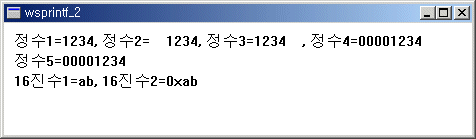 wsprintf(lpOut,TEXT("16Áø¼ö1=%x, 16Áø¼ö2=%#x"),0xab,0xab);