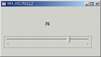 ´ÙÀ½ ¿¹Á¦´Â ¼öÆò Æ®·¢¹Ù·Î 0~100±îÁöÀÇ °ªÀ» ÀԷ¹޴ ¿¹Á¦ÀÌ´Ù. Æ®·¢¹Ùµµ ½ºÅ©·Ñ ¹Ù¿Í ¸¶Âù°¡Áö·Î º°µµÀÇ ÅëÁö ¸Þ½ÃÁö ´ë½Å WM_HSCROLL ¸Þ½ÃÁö¸¦ º¸³»¸ç ½ºÅ©·Ñ ¹Ù¿Í µ¿ÀÏÇÑ ¹æ¹ýÀ¸·Î ó¸®ÇÑ´Ù.