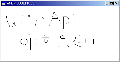 ¸¶¿ì½º ¹öưÀ» ´©¸¦ ¶§ÀÇ ÁÂÇ¥¸¦ x,y¿¡ ±â¾ï½ÃÄÑ ³õ°í ¸¶¿ì½º¸¦ ĸóÇÑ´Ù. ÀÌ »óÅ¿¡¼ ¸¶¿ì½º¸¦ ¿òÁ÷ÀÌ¸é ¸¶¿ì½º°¡ À̵¿ÇÑ °Å¸®¸¸Å Á÷¼±À» ¹Ýº¹ÀûÀ¸·Î ±×¸²À¸·Î½á ÀÚÀ¯ °î¼±À» ±ß´Â´Ù. WM_MOUSEMOVE ¸Þ½ÃÁö´Â ĸó ¿©ºÎ¿¡ »ó°ü¾øÀÌ Ç×»ó Àü´ÞµÇ¹Ç·Î bnowDraw º¯¼ö·Î °î¼±À» ±×¸®°í ÀÖ´Â ÁßÀÎÁö ¾Æ´ÑÁö¸¦ ¸ÕÀú È®ÀÎÇØ¾ß ÇÑ´Ù.